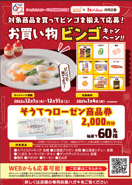 キャンペーン期間中にそうてつローゼン各店舗にてビンゴ表を元に
